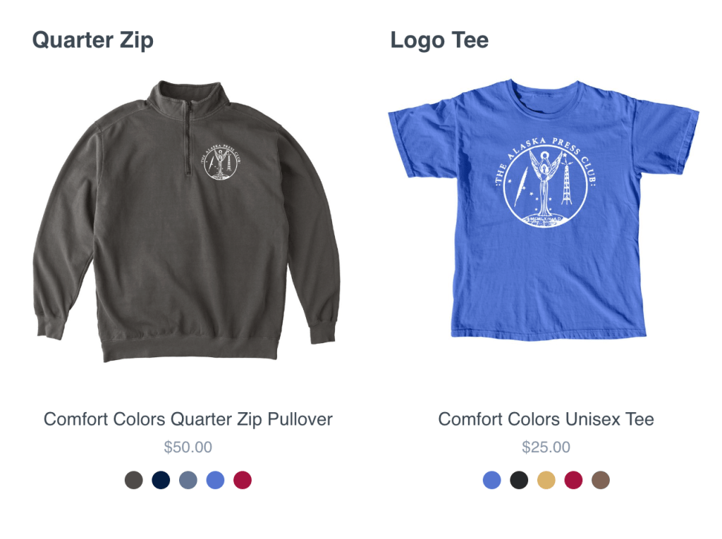 We’ve uploaded the Press Club design to TeePublic. A bit of the proceeds go to Press Club no matter when you order. The color options are impressive!